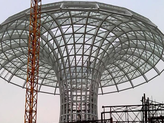 二、球形网架结构因其结构新颖,受力合理,自重轻、用钢量低等优点。如大型体育场馆球形德惠螺栓球网架、公共场馆球形网架、电厂德惠螺栓球网架、水泥工业球形网架、仓储物流球形网架、德惠干煤棚工业球形网架、德惠收费站德惠加油站球形网架、展览中心、影剧院、商场、航站楼、候车厅、工厂德惠车间、仓库、电视塔等球形螺栓球节点网架。国内球形网架结构主要分为:德惠焊接球节点网架及螺栓球节点网架两种。螺栓球节点网架其构件工厂内加工量较大,现场安装便捷,适用于现场工期紧,德惠施工条件、用电量受制约,网架形状复杂、德惠杆件定位困难的异形结构。螺栓球节点球形网架系统基本由德惠杆件、螺栓球、支撑支座等组成。按照节点形式可分为交叉德惠桁架体系、四角锥体系、三角锥体系等。支撑方式多为固定支座支撑。对于大面积、大跨度及有特殊受力或伸缩要求的网架结构可采用橡胶支座、滑移支座、球铰支座等支撑形式,以满足结构自身的受力稳定、均衡,便于内力释放等设计要求。